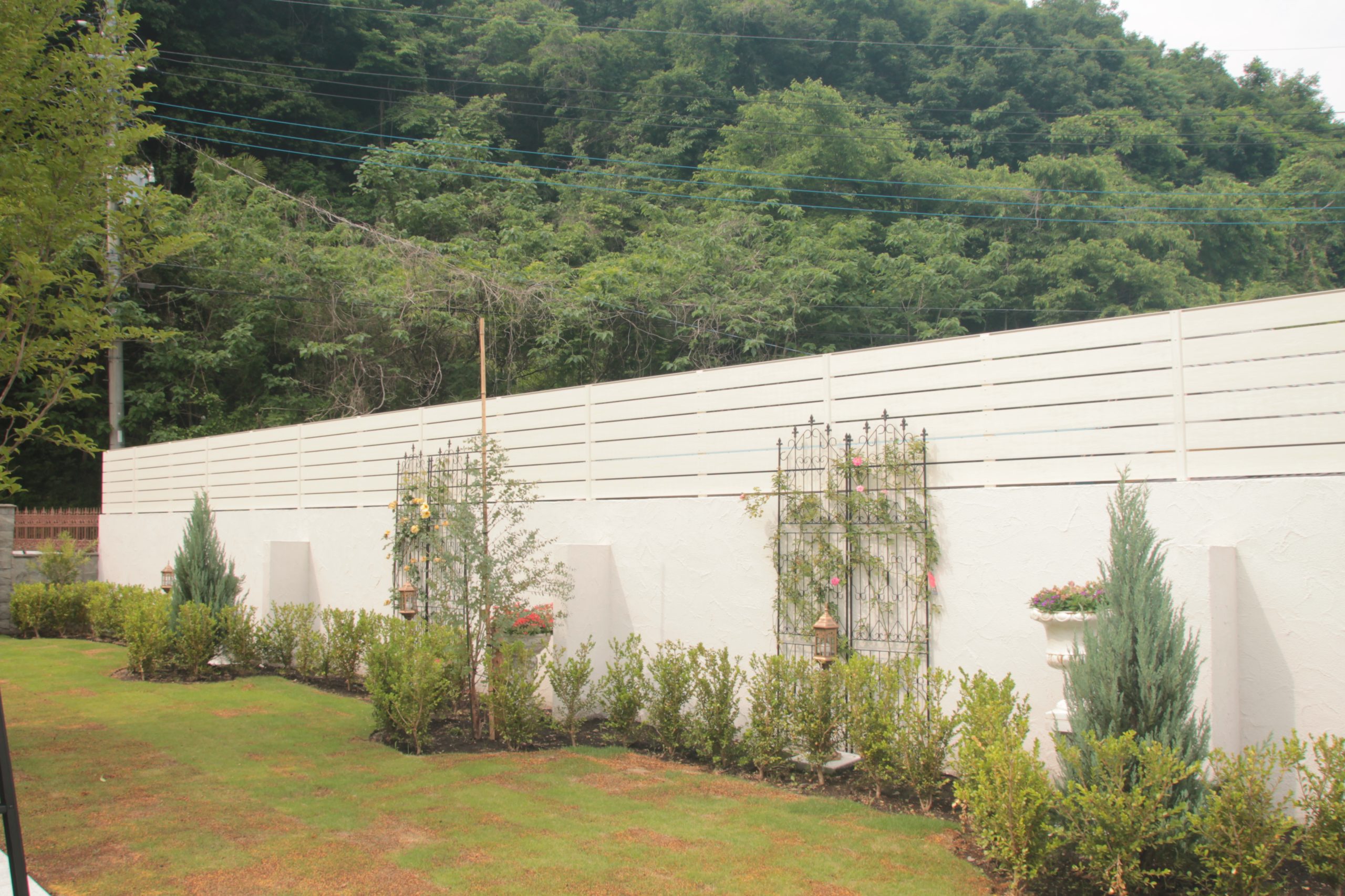 元々あった擁壁は塗り直してその上にはフェンスも施工。 建物に合う色味で統一しています。