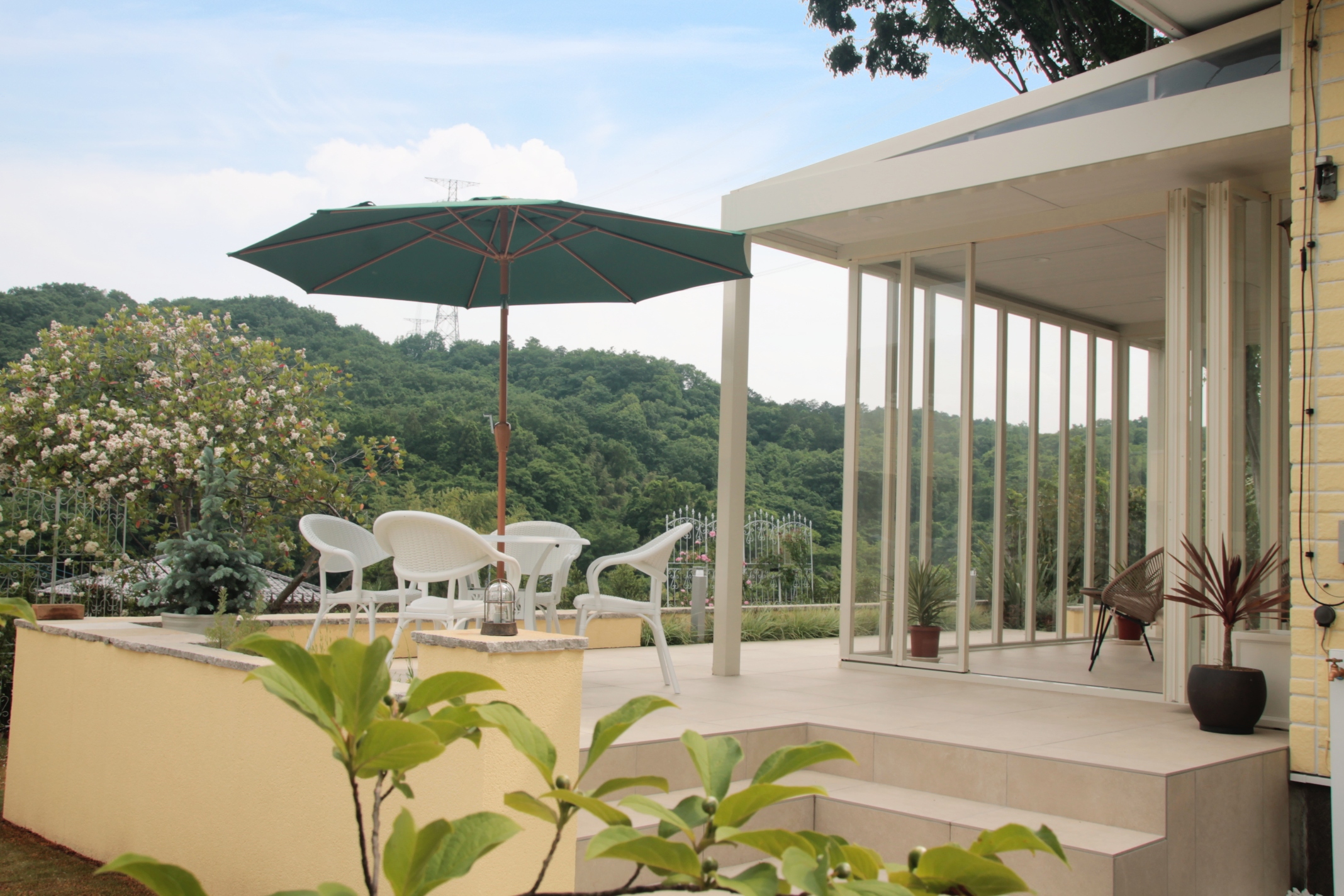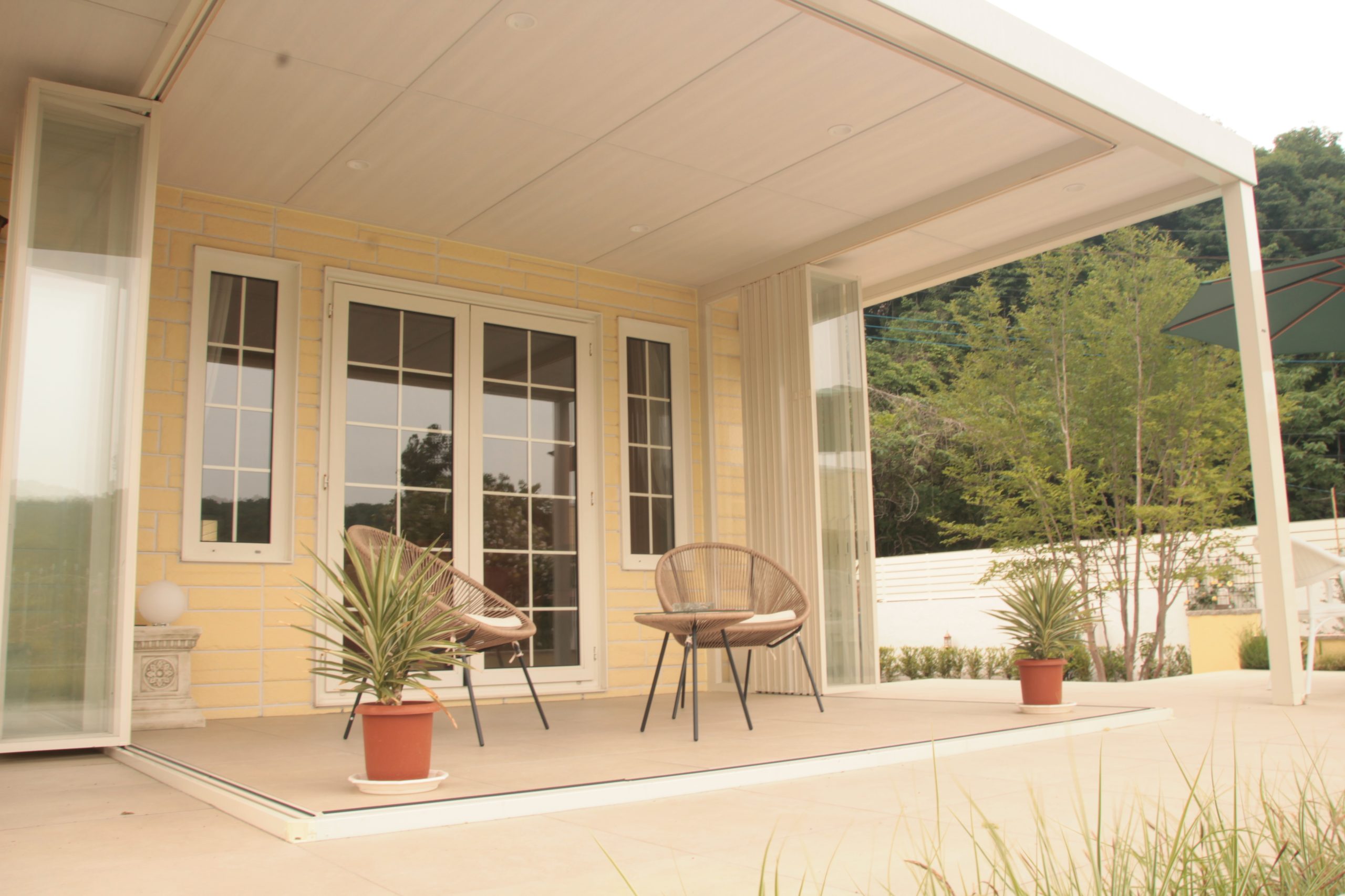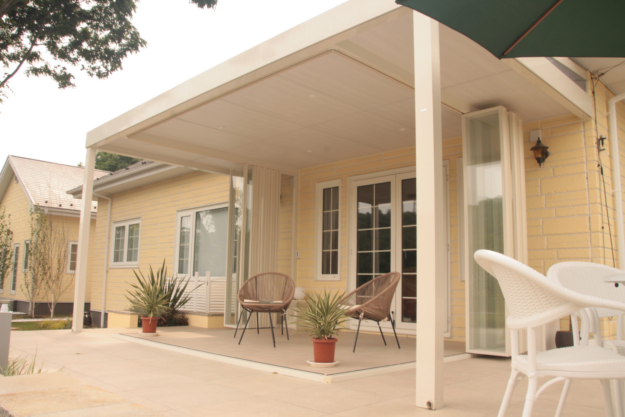 軒プラスがある点や、軒プラスにするとルームの柱がない状態でフルオープンにできることからジーマを選定されました。
