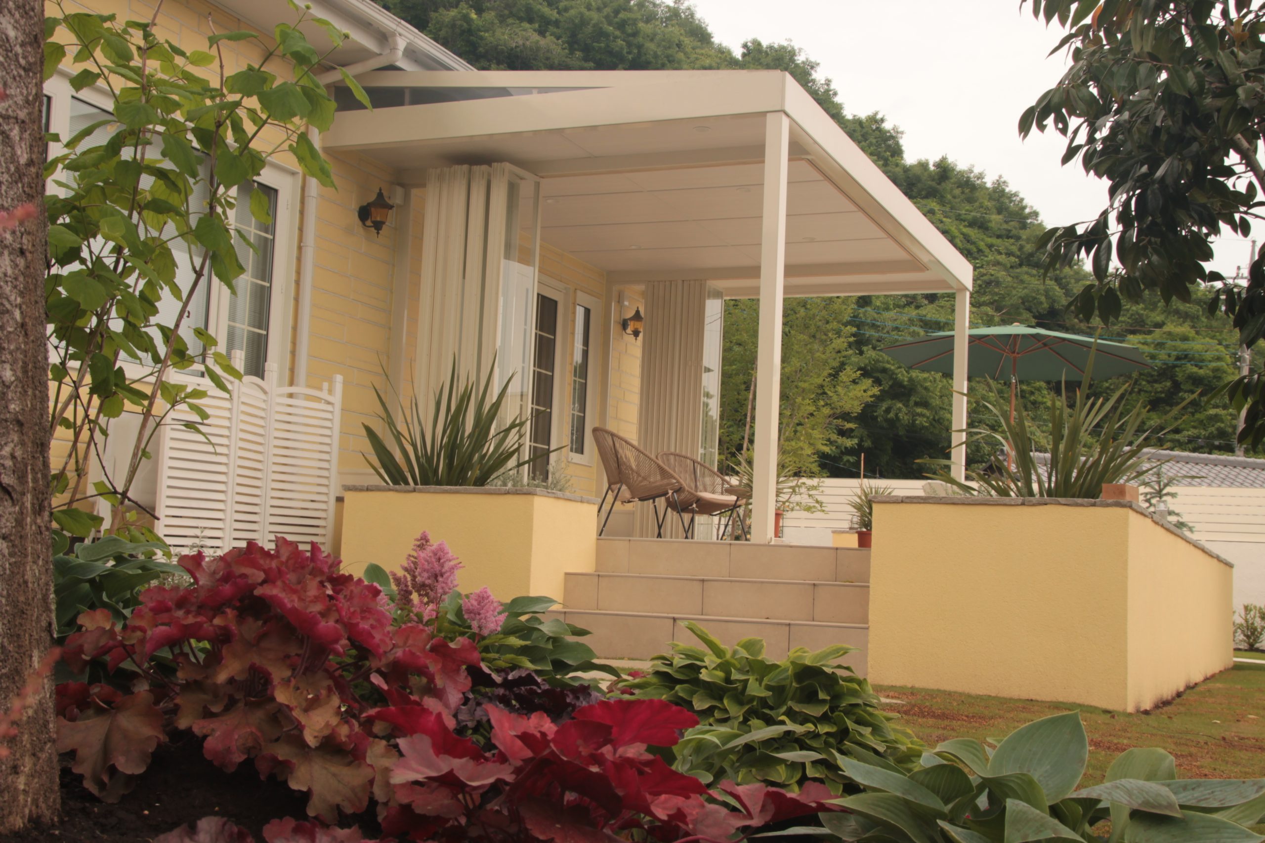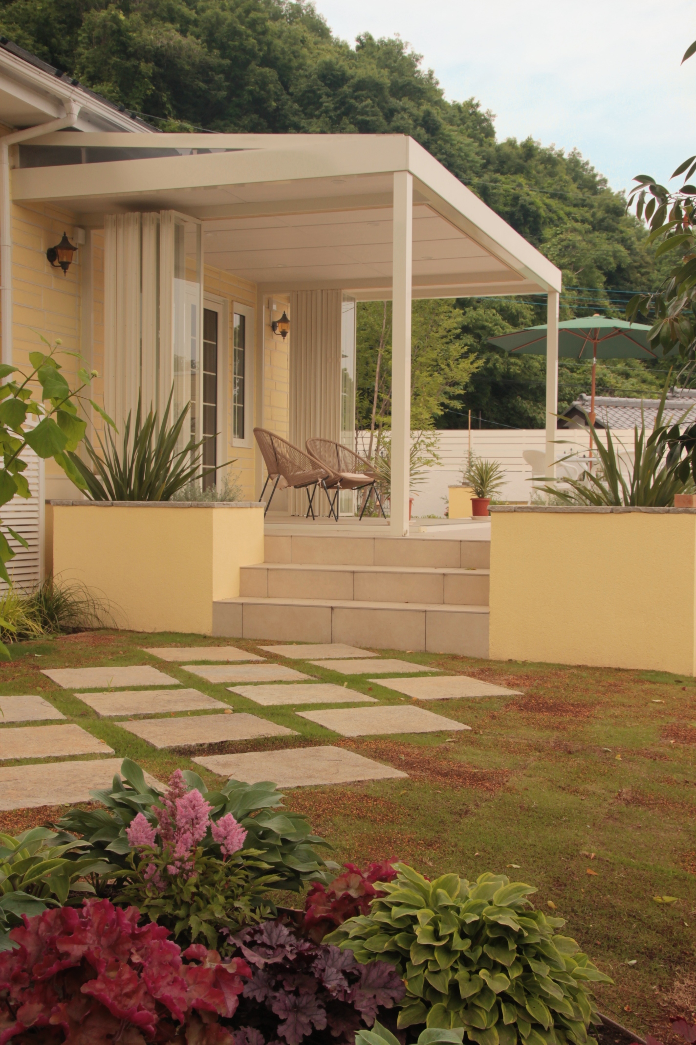 大型犬が走り回っていたという自然豊かなお庭から、ガーデンルームやアプローチ、擁壁、花壇などを設計し、トータルでリフォーム・施工させて頂きました。